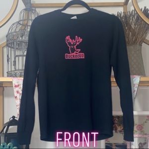 BUCKED UP Hot Pink/Black Long Sleeve T Logo front back and sleeves Winter Fall