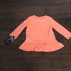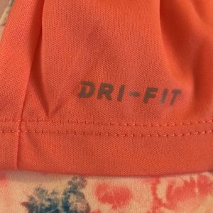 Nike dry fit 2 pice ensemble. 12 month girls. Top is orange with shimmer shine front Nike logo. Pants white , blue and orange tie die pattern , right bottom leg have blue Nike logo.