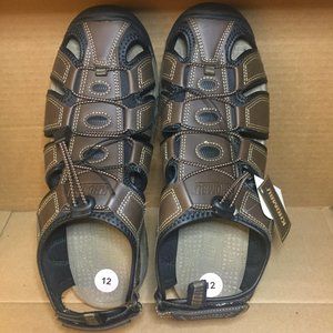 Synthetic and mesh upper in an outdoor river sandal style with a covered toe