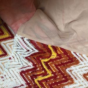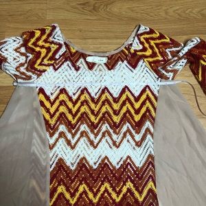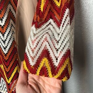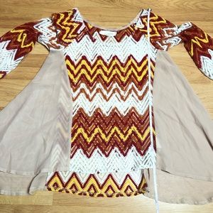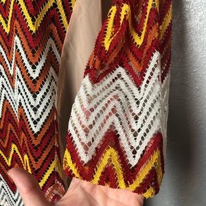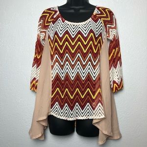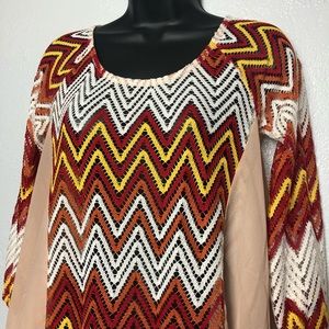 A’REVE chevron striped fall fire crochet knit shirt blouse sheer layers Sz Small