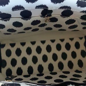 Gently used Kate Spade Ikat Dot Riley Tote, with inside zip pocket and two pockets with key holder. 16 in wide by 12 in tall. White with black dots.
