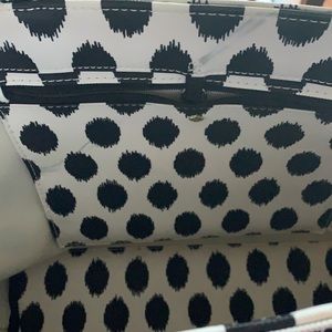 Kate Spade Ikat Dot Riley Tote white with black spots.