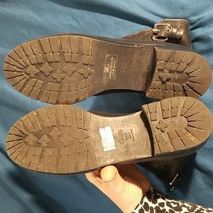 Gap brand leather moto boots in true black with buckle detail. Previously loved, but plenty of life left. There are some flaws including marks and scuffs; please look at pics closely!