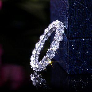 NEW Silver Round Diamond Eternity Ring