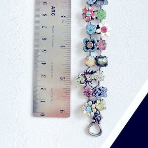 Whimsical vintage charm jeweled linked bracelet. Excellent condition. Beautiful colored jewels. Clasp detail. Brand: unknown