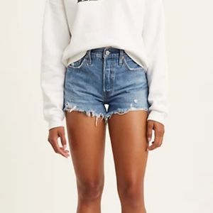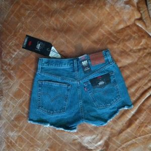 Brand new pair of levi's Premium 501 high rise shorts in size 25 and athens medium wash.