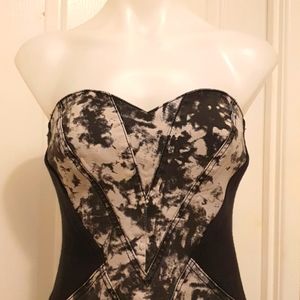 Bettina Liano Dress Stone wash Black and Grey Strapless full length Zipper Cotton and Elastine size 12