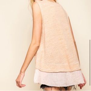 New! Soft Raw Hem double tiered contrast color top