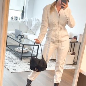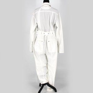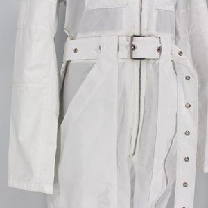 Proenza Schouler White Utility Jumpsuit Belt Cargo Pockets Long Sleeves Medium