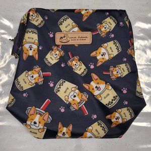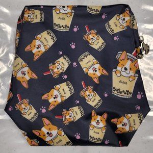 Waterproof Boba Corgi Large Opening Makeup Bag