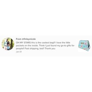 This is a high quality, brand name Uma Hana, Large Opening Cosmetic Bag. It is fashionable & functional with waterproof outer material & water repellent inner lining.