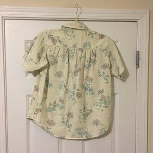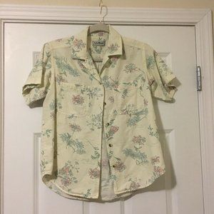 L.L. Bean Women’s Size XS Cream Green Pink Floral Button Up Shirt GUC