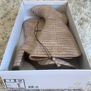 Scoop Women’s Joey Knee-High Heeled Boots, Bone Croco, Condition is "New with box".
