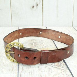 Men's Brown Leather Belt Solid Brass Buckle D-Ring Size 36