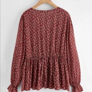 🦄SHEIN DITSY FLORAL SELF TIE PEPLUM TOP