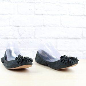 COACH Black Leather Floral Patch Slip On Ballet Flats Shoes Size 8 B