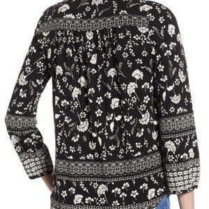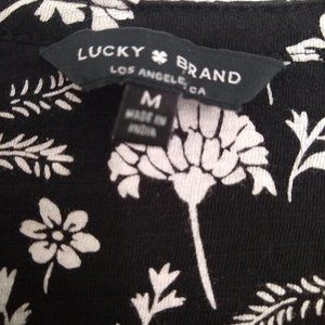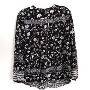 Lucky Brand Floral Print Henley Top In Black Multi Border Print Size Medium