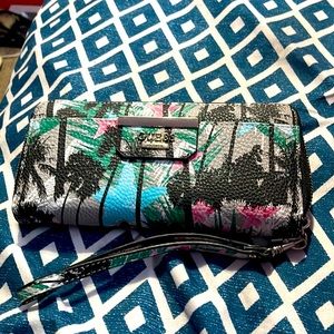 Guess tropical colored zip around wallet wristlet