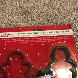 NWT Snowman Cookie Cutters and 60 minute Timer Set. Set of 4 Christmas Cookie Cutters and a 60 Minute Snowman Shaped Timer.