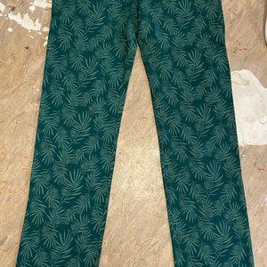 Lightweight, wrinkle-resistant ponte with 4-way stretch (light/dark green print).