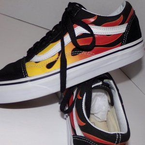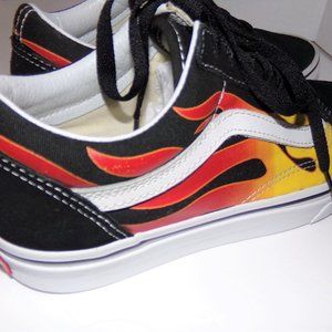 VANS MENS 6.5 WOMENS 8 REALLY COOL WITH FLAMES ON THE SIDE LIKE NEW LOVE THEM!