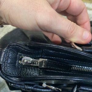 Ferragamo beautiful large black satchel style bag leather in pristine condition only has a couple of scratches on the hardware bag closes with a zipper made in Italy Has a zipper pocket inside as well as two other pockets gorgeous bag non-smoking home fast delivery at an excellent price get it today