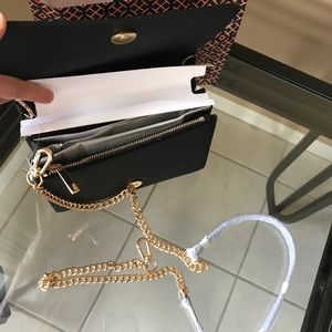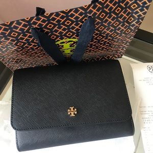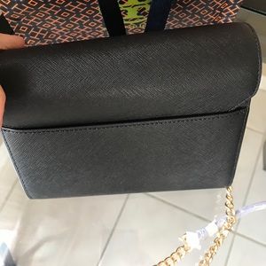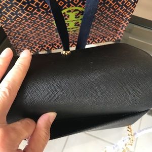 Absolutely beautiful brand new Tory Burch crossbody with gold chains and gold metal embellishment. Strong and sturdy yet easy to open and close clip. Perfect crossbody purse for everyday or tuck in chain and use as a clutch with a formal outfit! If I didn’t have one almost identical to this I would keep it! Bag included.