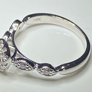 24 karat white gold .50cttw oval diamond halo engagement ring with diamond scalloped shank