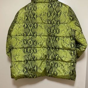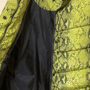 ****🎈Read Description🎈****🎊Sale🎊 Winter Coat, Betsey Johnson Coat , Water resistant, black and Lime green snake skin pattern, Woman Size M. THIS COAT RUNS BIG**** .. ***Medium fits like a size Large****I also have size L in this same color which fits me perfectly, which actually is an XL, that’s my normal size in coats.