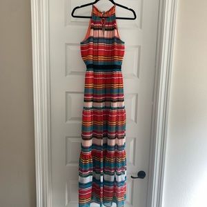 like new! Beautiful, vibrant colors! Fully lined, elastic waist and ties at the neck. I am 5’9” for reference