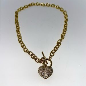 Ladies Heart Pendant Necklace! Featuring A Gold Filled Pendant! Pendant Measures 1” W x 7/8” H. Heart Shaped Is Adorned With White Sapphires! Gold Plated Chain Is 17” Long, With A Bar End Closure. Total Weight Is 45.0 Grams! NWOT! Three Day Money Back Guarantee! All Jewelry Is Cleaned And Polished Before Shipping