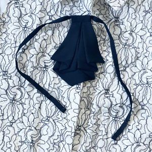 Karl Lagerfeld Black & White Embroidered Lace Sleeveless Button Down Blouse with detachable Ascot.