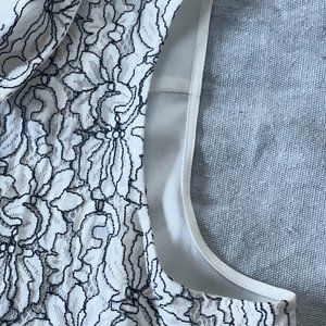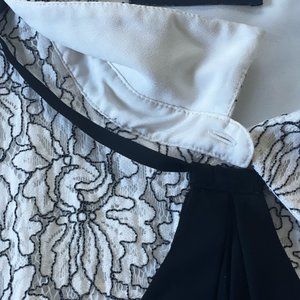 Karl Lagerfeld Black & White Embroidered Lace Sleeveless Button Down Blouse