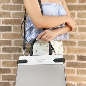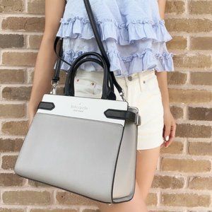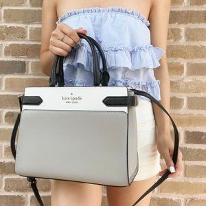 Kate Spade Staci Medium Top Zip Satchel Crossbody Colorblock Grey White Black