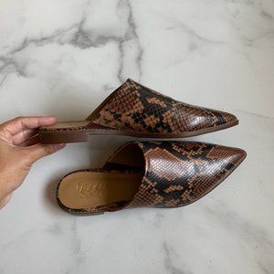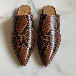 NEW Franco Sarto Rayna brown snakeskin point toe print mules Size 8.5