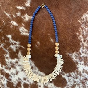 Give me all the navy and gold! This navy, gold and white combo is a beautiful piece, perfect for layering with a dainty necklace or by itself! Toggle clasp closure with a 14” drop length. Wear with a tee or blazer- versatile and fun! Check out my Etsy shop at CarolinianMagnolias and favorite an item for a coupon!