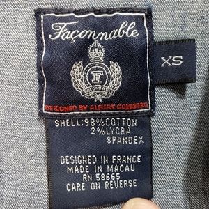 Vintage Faconnable Women's Button Up Denim Stretch Light Jacket Shirt Pockets Size XS. Excellent Condition- Pre-owned. Pit to pit 17", length 21". Offers welcome