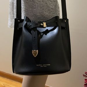 💯 authentic Marc Jacobs black bag/ 100% split cow leather/ adjustment straps/ very elegant, crossbody and shoulder bag/magnetic closure/ Classic/ one pocket inside/ brand new with tag and book.please the price is firm .