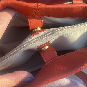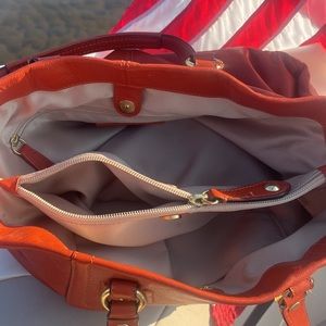 Coach Leather Handbag with removable shoulder strap. Very roomy inside, with two pockets. One holds your cellphone. Center and side zipper to hold and hide more of your belongings.