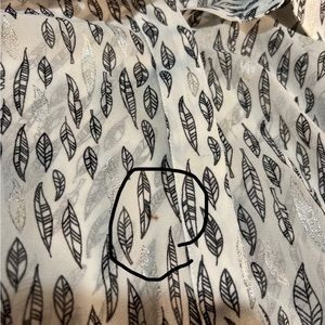 Sheer White w/ Black and Metallic Silver Feather Print