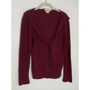Women's Michael Kors Burgundy Cable Knit Button Cardigan Sweater Sz L C3. Condition is "Pre-owned". Shipped with USPS