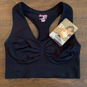 Wireless compression sports bra in misses size medium (M2) from MeMoi’s SlimMe collection. New with tags, will arrive in original shrink wrap from my smoke free and pet free home!