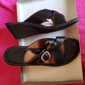 Born black leather buckle sandals