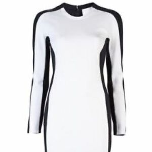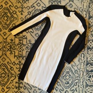 Form fitting dress by 3.1 Phillip Lim. Slimming black panels on the sides make for a sleek look. Back is solid black. Reposhing as it’s a little too tight for my liking!