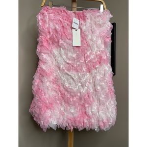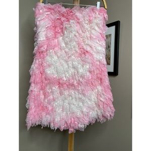 Turn heads in this so special, strapless mini dress from LoveShackFancy featured in a gathered, hand tie-dyed, polka dot tulle fabrication with cinched waist for added shape.