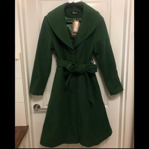 Dangerfield Revival green “Twirl My Way” coat size AU 12. Vintage-inspired flare coat BNWT. Tie belt with large buttons. Wool blend with satin lining. Spare button attached.