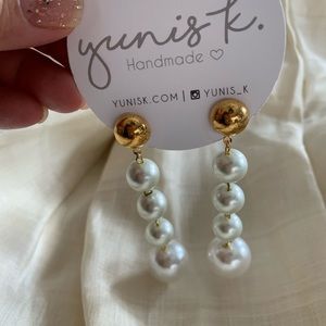 Brand new! Statement Earrings with a twist—over-sized Pearls are both sexy and understated. Uber Cool Yunis K is an authentic blend of old world and new wave Bohemian jewelry aesthetic. Perfect for the moment we are now living in.