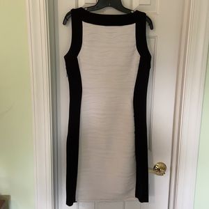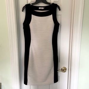 Calvin Klein, women’s size 10, ribbed white base with black paneling on sides. Zipper down side seam.