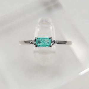 Solid sterling silver, lab created Paraíba tourmaline and simulated diamonds.