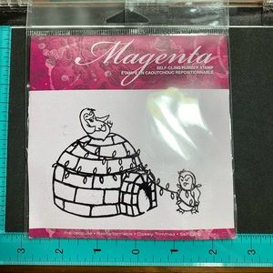 Magenta Christmas Igloo and Penguins Rubber Stamp